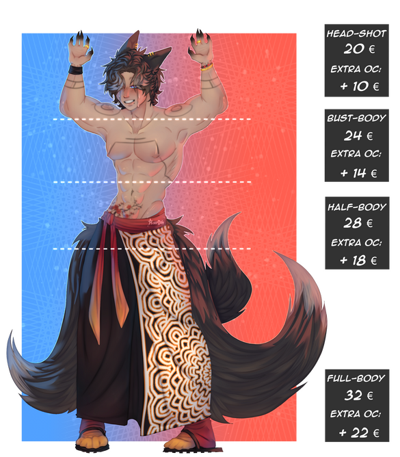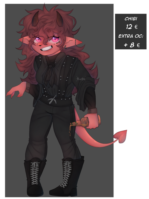 If you want me to design you an oc (custom adopt) will be the chosen reference sheet price +10€ (will increase if complex design).
